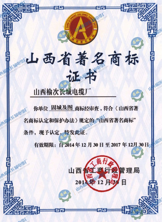 山西省著名商標證書